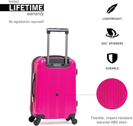 - Luggage is made of a durable, lightweight hard ABS exterior with reinforced protective molded corner guards that absorb shock for maximum impact resistance and durability.